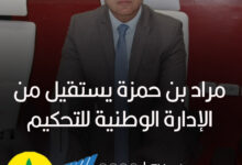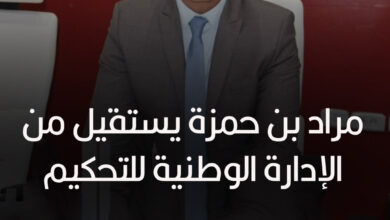 قرر صباح اليوم الحكم الدولي السابق مراد بن حمزة الاستقالة من مهامه بالادارة الوطنية للتحكيم تحت اشراف الجزائري جمال الحيمودي. وحسب مصدر مطلع فإن الحكم الدولي السابق عوّاز الطرابلسي هو…