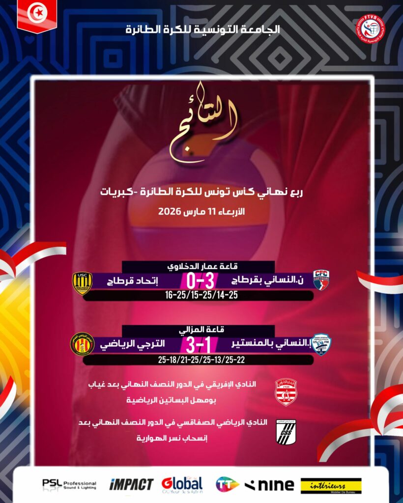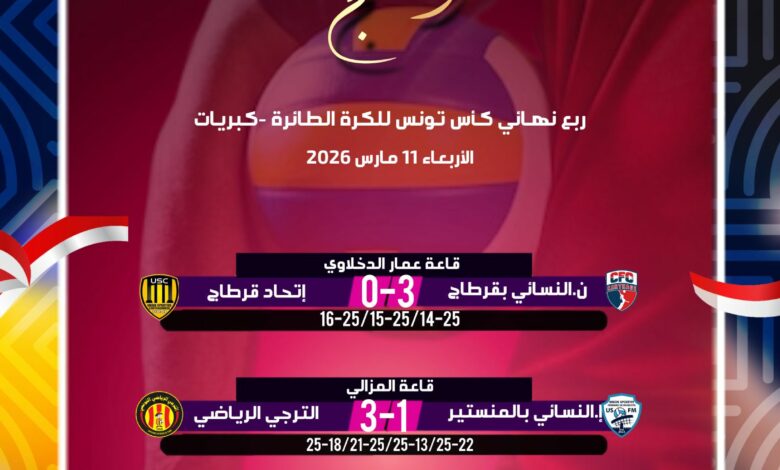 الكرة الطائرة: نتائج ربع نهائي كأس تونس كبريات